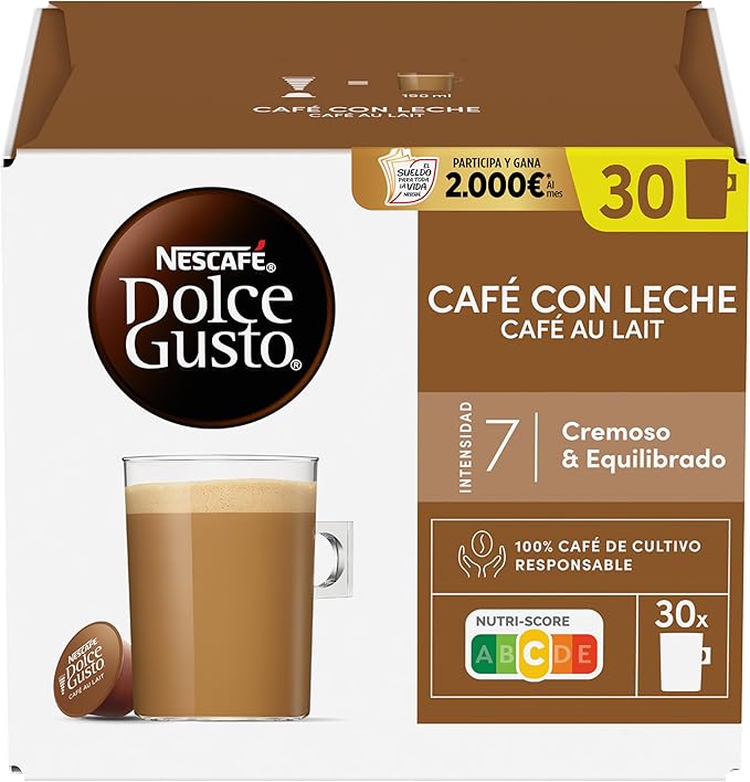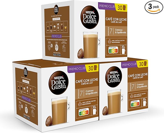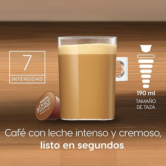 Enjoy optimal quality coffee with NESCAFÉ Dolce Gusto Café con Leche capsules. These capsules are suitable for any occasion, whether it is to start the day with energy or for an afternoon break. Coffee combines with milk to create a smooth, creamy drink. With NESCAFÉ Dolce Gusto, you can enjoy the experience of optimal quality coffee in the comfort of your home. Get ready to taste the true taste of coffee.